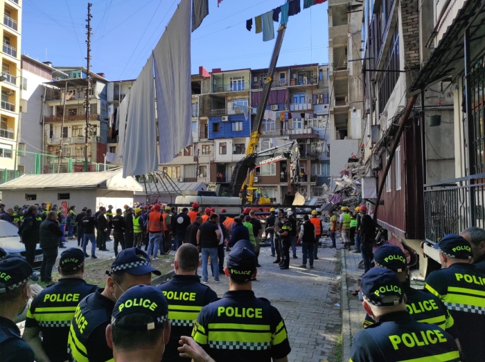 Alınan bilgiye göre, Gürcistan'ın Acara bölgesindeki Batum kentinde 26 Mayıs Sokağı'ndaki 7 katlı bir binanın henüz belirlenemeyen bir nedenle çökmesi sonucu, civardaki bazı araçlar da enkaz altında kaldı.