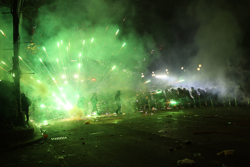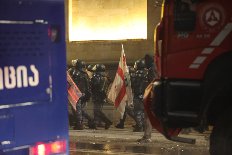 Polisin ilerleyişine tekrar piroteknik ve eşyalar atarak yanıt veren eylemciler, bu sefer İlia Çavçavadze Caddesi'ne doğru yürüdü.