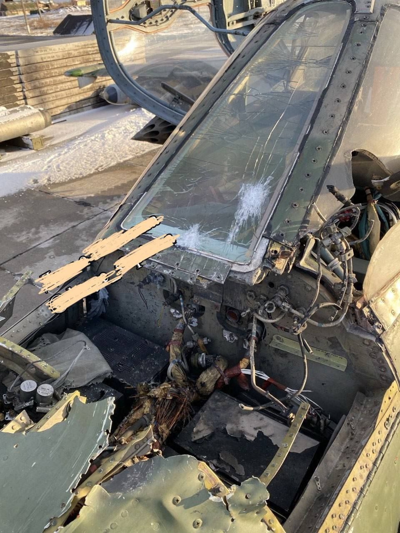 ZALA keşif İHA'sıyla çarpışan Su-25'in burun kısmının ağır hasar aldığı görüldü.