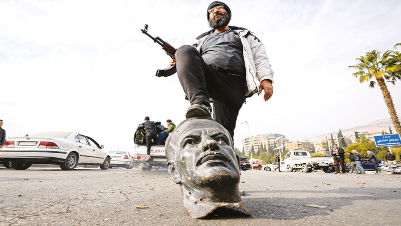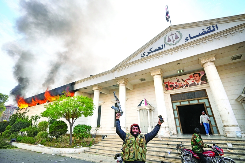 Başkent Şam'daki hükümet binası ile emniyet müdürlüğü binasına giren muhalifler, havaya ateş açarak sevinç gösterileri düzenlendi. Esed'ın resimlerini çiğneyen muhalifler, rejime ait yazı ve resim ve bayrakları kaldırdı. Tüm devlet binalarına el konuldu. Muhalif grupların lideri Ebu Muhammed El Cevlani güçlerine Şam'daki resmi kurumlara yaklaşmamalarını ve ateş açmamalarını emrederek, "resmi olarak" teslim edilene kadar mevcut Suriye Başbakanı Celali'ye bağlı kalacaklarını duyurdu. Celali ise Bakanlar Kurulu'nu toplayarak iktidarı devredeceğini belirterek, "Suriye'de halkın seçeceği bir hükümetle çalışmaya hazırız. Suriye tüm Suriyelilerin. Bu ülke normal bir ülke olabilir, bu ülke komşularıyla ve dünyayla iyi ilişkiler kurabilir" dedi.