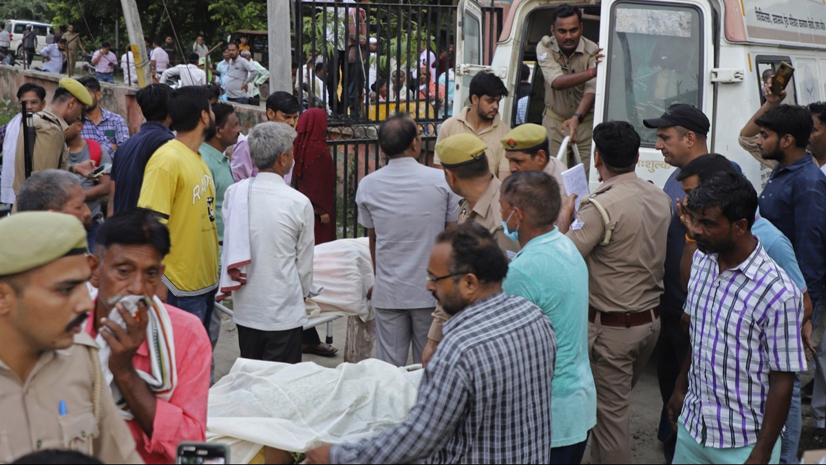 DİN ADAMINA DOKUNMAK İSTEYENLER İZDİHAM OLUŞTURDUİzdihamın nedeni henüz netlik kazanmazken, Uttar Pradesh Eyalet Başbakanı Yogi Adityanath, izdihamın kalabalığın etkinlikten sonra aşağı inmekte olan din adamına dokunmak için sahneye doğru itmeye başlamasıyla meydana geldiğini söyledi.
