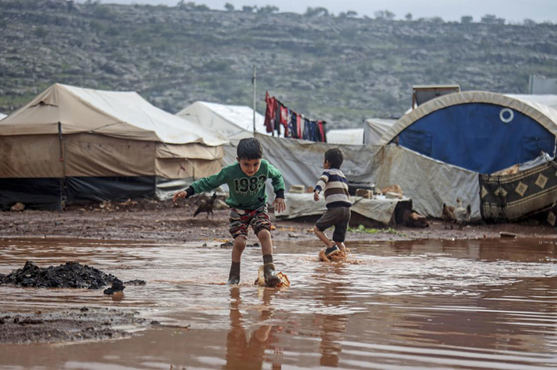 Hava sıcaklığının gece saatlerinde sıfır dereceye düştüğü bölgede sık sık yağmur yağıyor. Çoğu bez olan ve su alan derme çatma çadırlarda barınmak neredeyse imkansız hale geliyor.