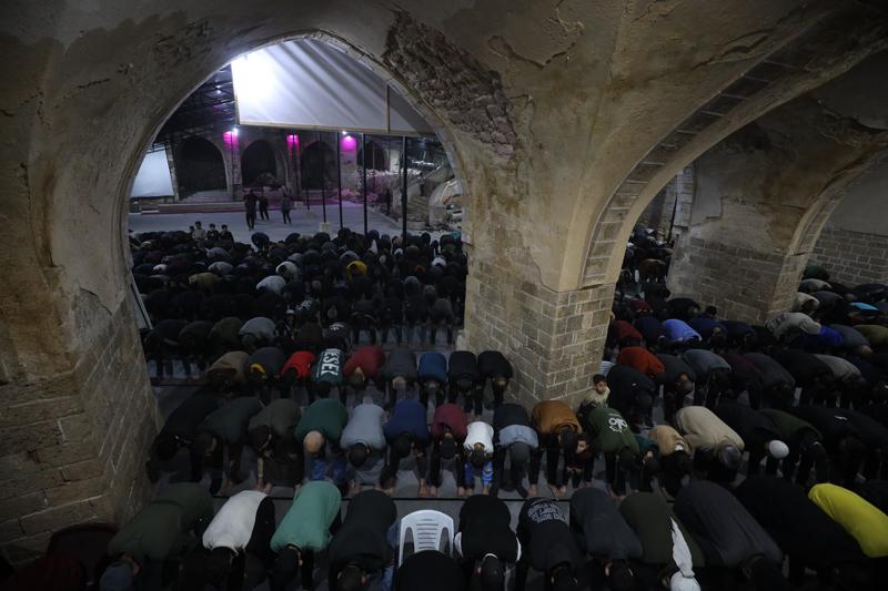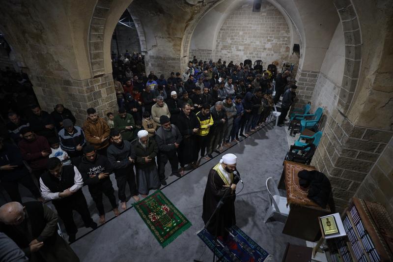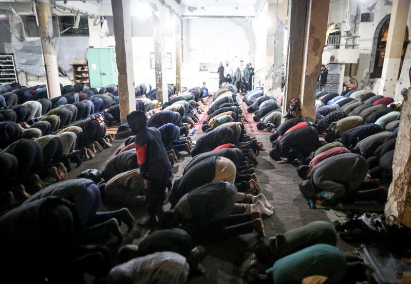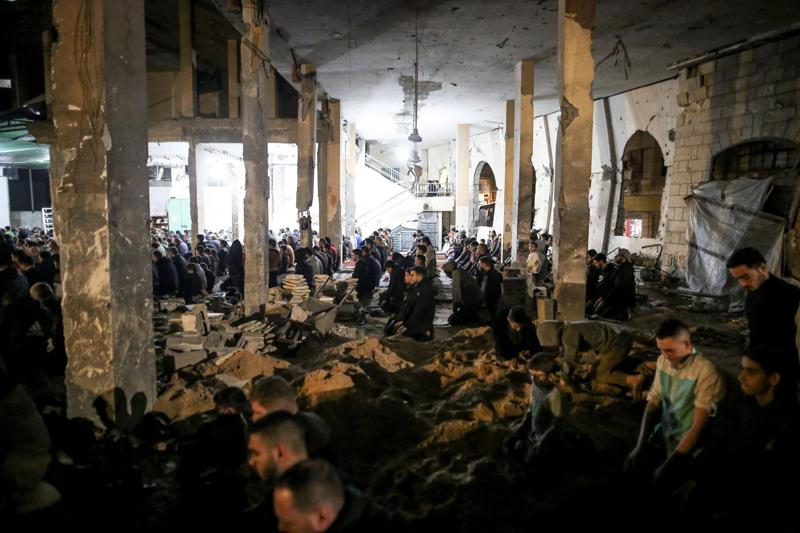 Gazze Şeridi'nin en eski ibadethanelerinden biri olan ve 1400 yıllık geçmişiyle Gazze kentinin simgeleri arasında yer alan kısmen yıkılmış Büyük Ömeri Camisi'nde de teravih namazı eda edildi.