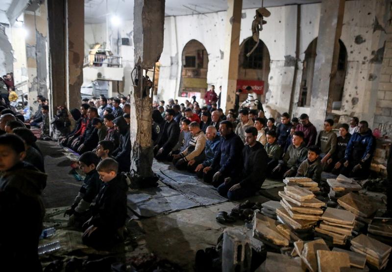 Gazze Şeridi'ndeki Müslümanlar, 2 yıl süren ağır bombardımana son veren ateşkesten sonra bu yıl teravih namazını bombalanan camilerin enkazlarında veya çadır kamplarındaki çadır mescitlerde kıldı.
