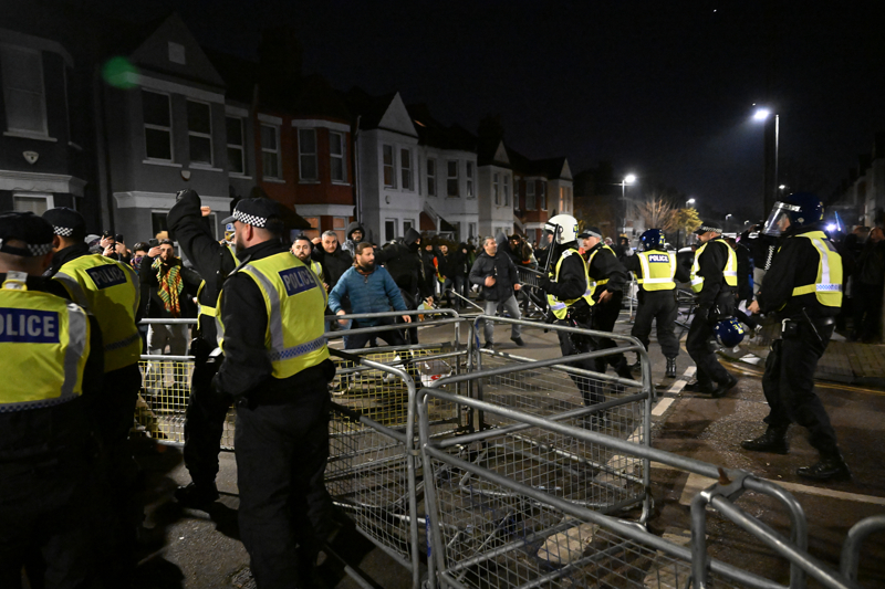 İngiltere'de terör örgütü PKK'ya yönelik yürütülen soruşturma kapsamında 7 kişinin gözaltına alınmasının ardından ikinci kez eylem düzenleyen terör örgütü yandaşları yine polisle çatıştı.