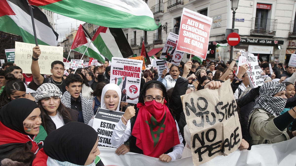 Madrid, Barselona, Valensiya, Sevilla, Granada, Malaga, Girona, Bilbao'nun da aralarında olduğu 25 kentte öğrenciler, "Filistin halkıyla dayanışma, Gazze'de soykırımı durdurun" başlığı altında gösteri düzenledi.