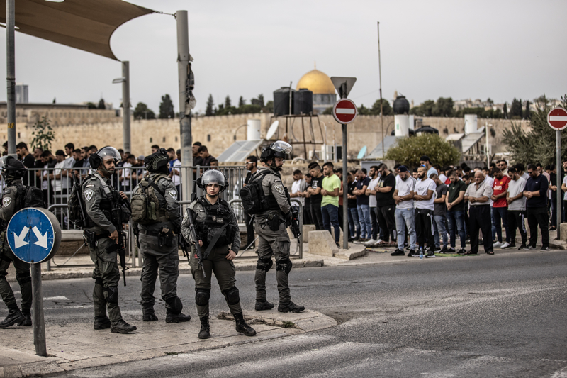Mescid-i Aksa'nın kapılarında bekleyen İsrail polisleri cuma namazı kılmak isteyen ancak içeri alınmayan Filistinlilere zaman zaman müdahale ederek güç kullandı.
