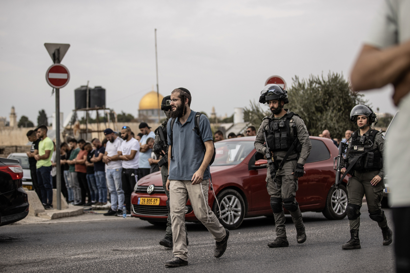 İsrail polisi ve cumadan çıkan Filistinli gençlerin bekleyişi sürüyor.