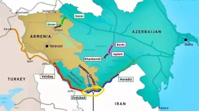 Yazıda, Zengezur Koridoru'nun Türkiye'yi Orta Asya'dan Avrupa'ya uzanan kuzey ticaret hattının merkezine yerleştirdiği vurgulandı.