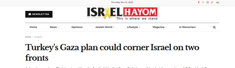 Türkiye'nin askeri gücüne de vurgu yapılan haberde ayrıca, Tel Aviv'in Gazze'de herhangi bir Türk askeri varlığına kararlılıkla karşı koymaya devam etmesi gerektiği ve yaratıcı bir şekilde Washington ile yakın koordinasyon içinde hareket etmesi gerektiği dile getirildi. Haberde son olarak, Mısır-Suudi Arabistan-BAE ekseniyle birlikte çalışarak Türkiye'nin Gazze Şeridi'ndeki rolünün en aza indirilmesi gerektiğinin altı çizildi.
