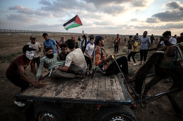 Filistinli grupların çağrısıyla yüzlerce kişi, İsrail ablukası altındaki Gazze Şeridi'nin doğu sınırında, Mescid-i Aksa'nın yakılmasının 52'nci yılında İsrail'i protesto etmek için toplandı.