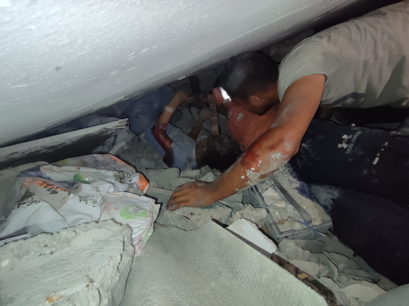 Enkaz altında halen binlerce ölü olduğu bildirilirken, halkın sığındığı hastane ve eğitim kurumları hedef alınarak sivil altyapı da tahrip ediliyor.