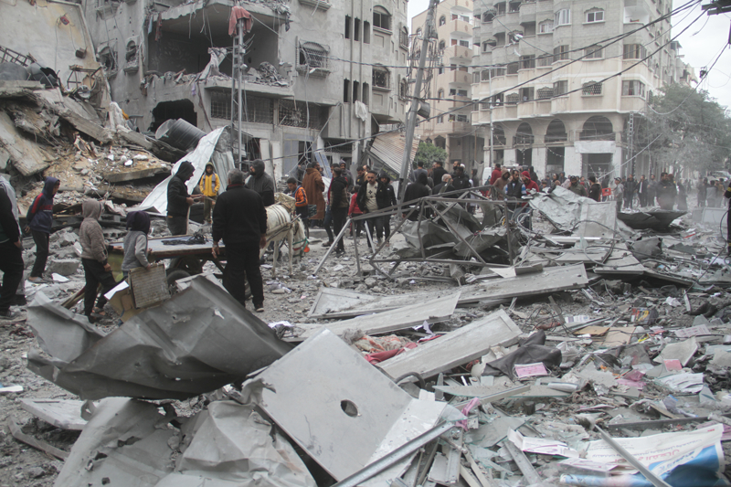 İşgalci İsrail güçlerinin Gazze Şeridi'nin çeşitli bölgelerine kara, hava ve denizden yürüttüğü saldırılar, ardında ölü ve yaralıların yanı sıra büyük yıkımlar bırakarak 419. gününde sürüyor.