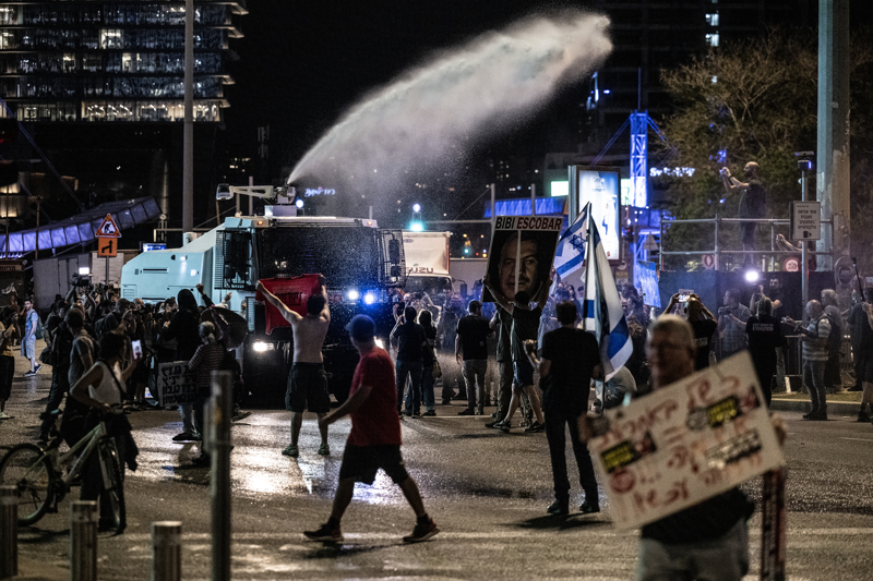 Protestoların merkezi, on binlerce İsraillinin akşam saatlerinde toplandığı başkent Tel Aviv'de yer alan, Netanyahu hükümetinin yargı düzenlemelerine karşı yapılan gösterilerde sembolleşen, polisin demir bariyerlerle kapattığı Kaplan Caddesi oldu.