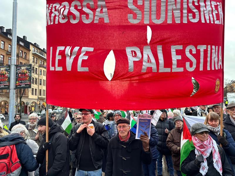 Çok sayıda sivil toplum kuruluşunun çağrısıyla Odenplan Meydanı'nda bir araya gelen kalabalık, "İsrail ateşkese uymuyor", "Soykırımı durdurun" ve "Sonsuza kadar Filistin" yazılı pankartlarla İsveç Parlamentosu'na yürüdü.