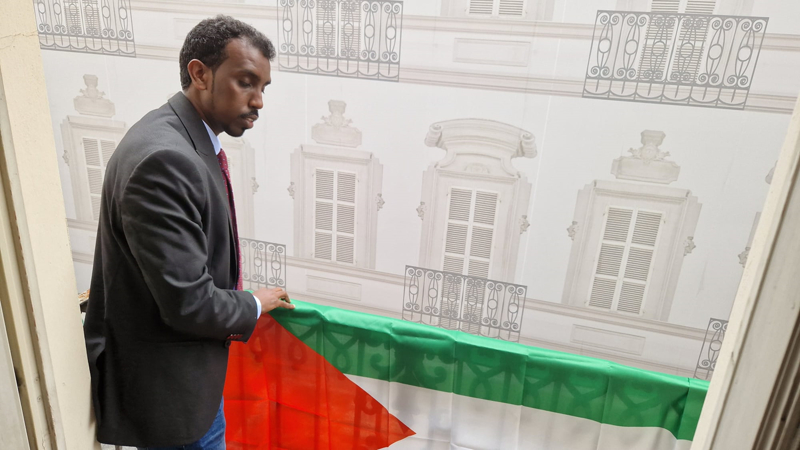 Ahmed, AA muhabirine yaptığı açıklamada, Filistin'e destek ve dayanışmasını göstermek aynı zamanda, "Tüm gözler Refah'ın üzerinde" kampanyasına katılmak için kısa süre önce benzer bir uygulamaya giden Bologna Belediyesi gibi belediye binasına Filistin bayrağı astığını söyledi.