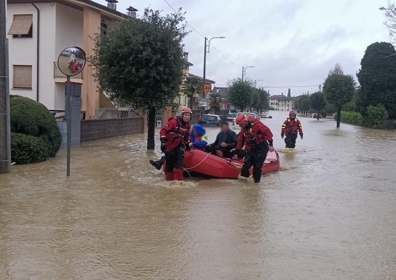 Yine Gorizia'ya bağlı Romans d'Isonzo ve Versa kasabalarının yakınından geçen Torre Nehri'nin aşırı yağışlarla taşması neticesinde Versa'da cadde ve sokaklar sular altında kaldı. İtalyan İtfaiyesi helikopteri, Versa'daki durumu havadan görüntülerken, yardım yapılacak noktaları belirledi.