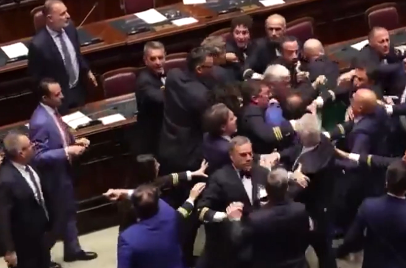 Temsilciler Meclisi Başkanı Lorenzo Fontana'nın vekillerin kavgasıyla ilgili tüm görüntüleri detaylı incelemek üzere toplattığı ve oturumu yarın sabaha ertelediği kaydedildi.