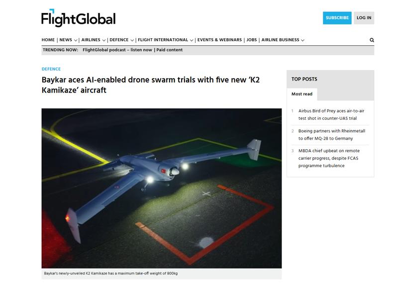Dünyanın en iyi insansız sistemlerinden birini yine Türkiye'nin geliştirdiği ifade edilen haberde, K2 Kamikaze İHA'nın, Baykar'ın geçen yıl 2,2 milyar dolarlık ihracatlık geniş ürün yelpazesine eklenen bir sistem olduğu vurgulandı.
