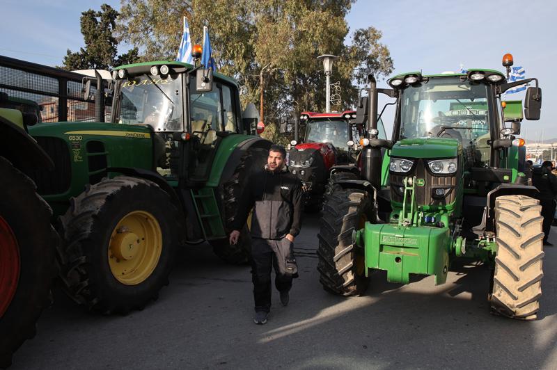 Sabah saatlerinde bölgede toplanan çok sayıda çiftçi ve besici, traktörlerle Volos Limanı'nın ana girişlerini kapatarak ulaşımı durdurdu.