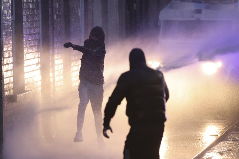 Açıklamada, saat 01.00'de sona eren eylemlerin diğer kentlerde çoğunlukla barışçıl geçtiği, dün polise atılan yabancı maddeler arasında bir balta bulunduğu bildirildi.