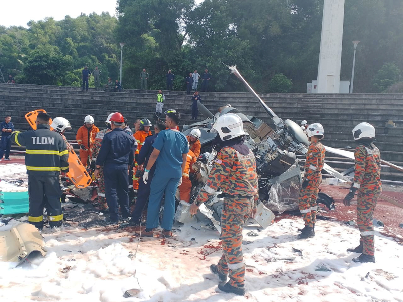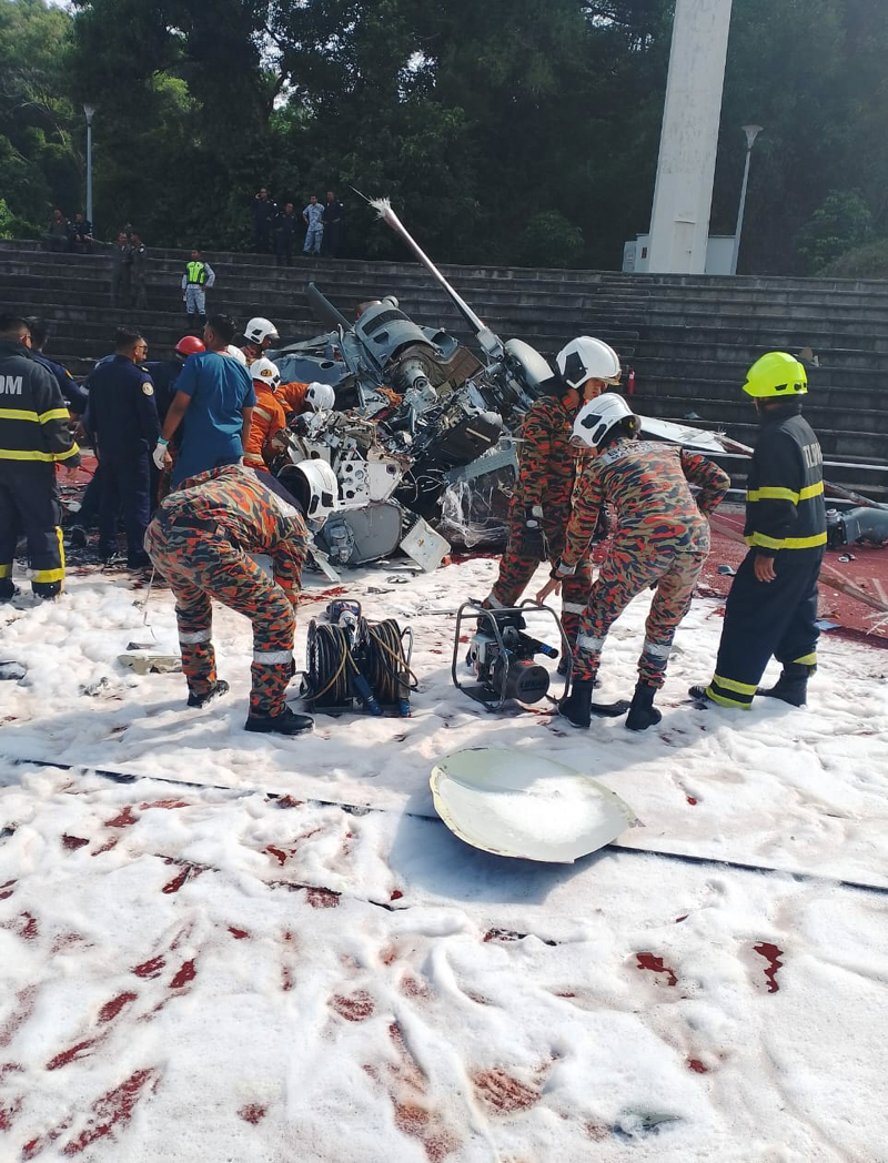 Malezya Deniz Kuvvetleri Komutanlığından yapılan açıklamaya göre, donanmanın 90'ıncı yıl dönümü kutlamaları için Perak eyaletinde geçit töreni provası kapsamında eğitim uçuşu gerçekleştiren 2 helikopter havada çarpıştı.