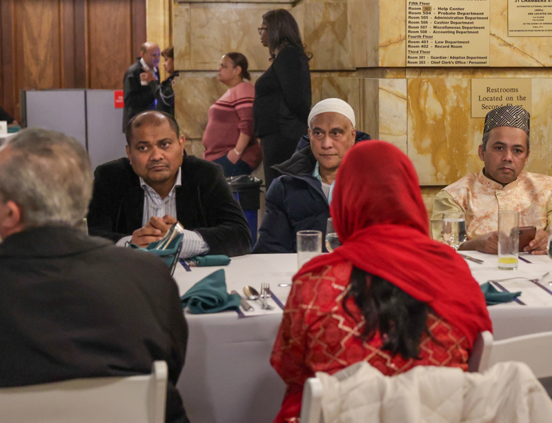 Manhattan'daki Surrogate's Mahkeme binasında verilen iftara, New York'ta yaşayan Müslüman toplumunun önde gelen isimlerinin yanı sıra İslam ülkelerinden diplomatik temsilciler katıldı.