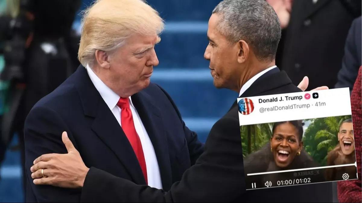 Trump'ın Truth Social hesabında yayınlanan ve eski Başkan Barack Obama ve eşi Michelle Obama'yı ormanda yaşayan maymunlar gibi gösteren "ırkçı video paylaşımı" tepkiler üzerine kaldırıldı.