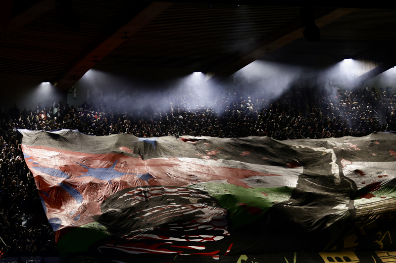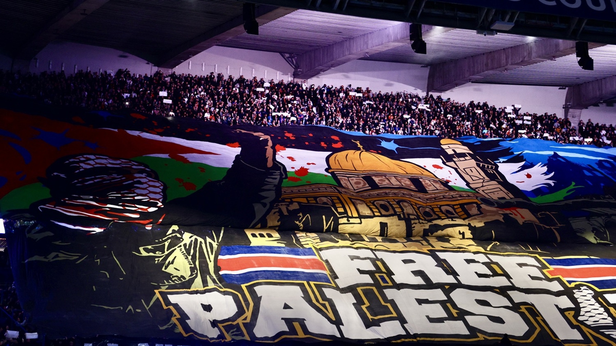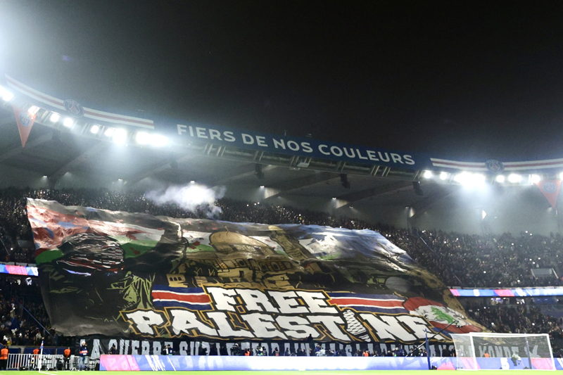 PSG ve Atletico Madrid arasında oynanan maçta açılan ve "Özgür Filistin" yazılı pankartta, yüzü Filistin kefiyesiyle örtülü bir kişi, Mescid-i Aksa içinde yer alan Kubbet'üs-Sahra Cami ve Lübnan bayrağı tasvir edilmişti.
