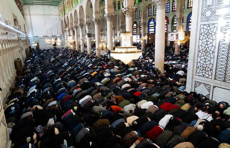 Suriye'de Baas rejiminin devrilmesinden sonra, başkent Şam'da bulunan Emevi Camisi'ndeki ilk cuma namazında saf tutuldu.