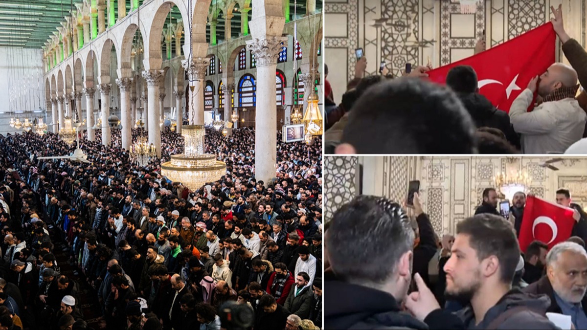 Şam'da binlerce kişi, 61 yıllık Baas rejimi ve Esed ailesi iktidarının devrilmesinin ardından Emevi Camisi'nde ilk cuma namazını kılmanın heyecanını yaşadı.