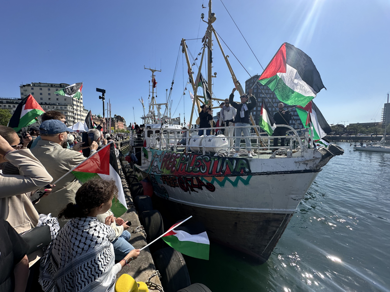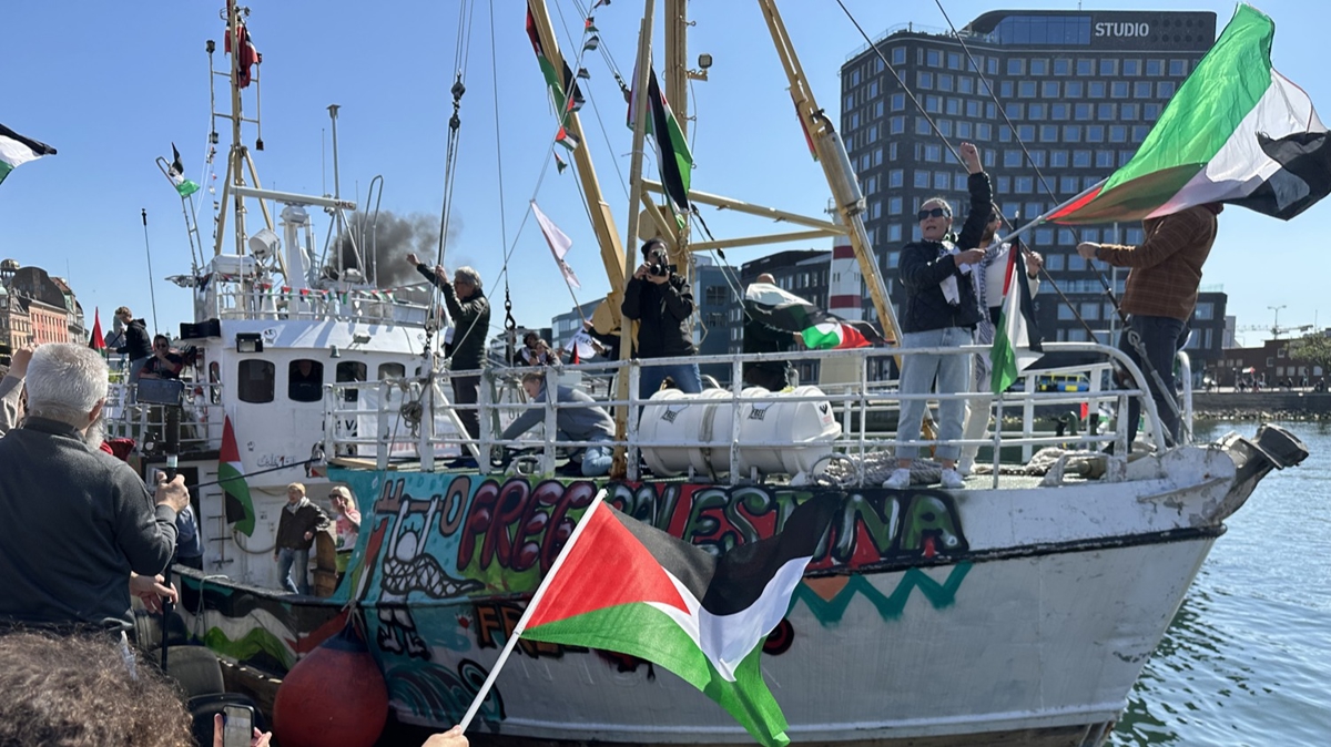 Özgürlük Filosu'na ait Handala isimli gemi, 12 kişilik aktivist mürettebatıyla Malmö'nün Dockplatsen limanına varırken, Filistin'i destekleyen sivil toplum örgütüne bağlı yüzlerce kişi de gemiyi limanda karşıladı. Filistin bayrakları taşıyan ve zafer işaretleri yaparak Handala mürettebatına destek veren grup, "İsrail'e boykot", "Filistin'e özgürlük" ve "Soykırımcı İsrail" sloganı attı.