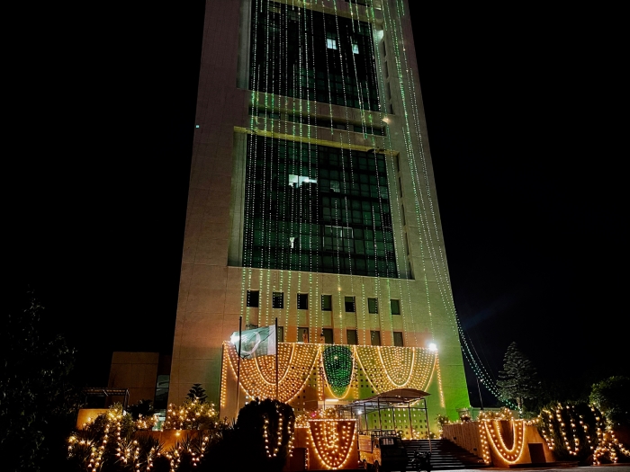 Başta başkent İslamabad olmak üzere ülkenin çeşitli kentlerinde devlet binaları, iş yerleri ve diğer binalar, Pakistan bayrakları ve renkli ışıklandırmalarla süslendi.