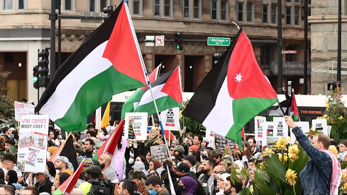 Dün, Strazburg kentinin merkezinde ellerinde Filistin bayrakları olan yaklaşık 300 kişi Filistinlilere destek gösterisi yapmak amacıyla toplandı.