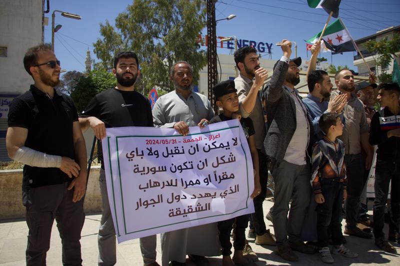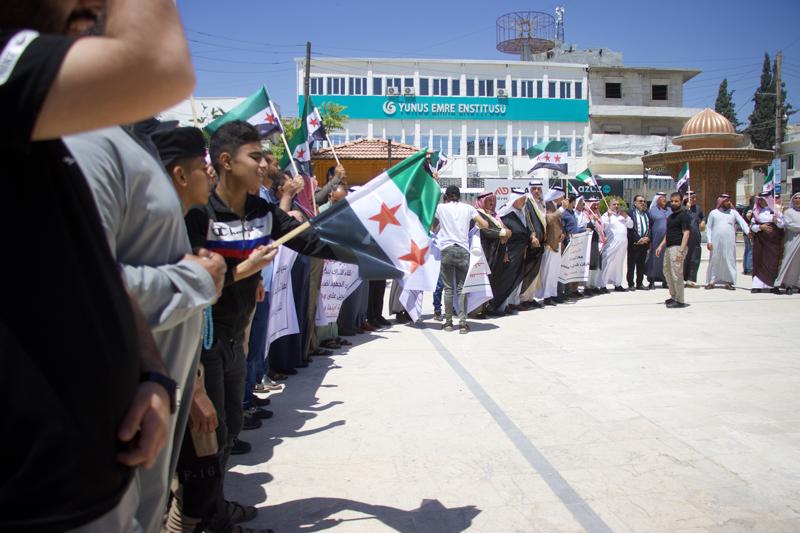 Azez ilçesindeki protestoculardan Deyrizorlu Leys El-dehil, "Rejim ve örgüt sebebiyle vatanımızdan ve evimizden uzaktayız. Örgütün yaptığı anlamsız seçim, Suriye'nin bölünmesine neden olur. Suriye'nin bölünmesini istemiyoruz." dedi.
