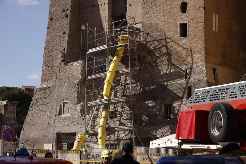 Başkentin merkezindeki Fori Imperiali Bulvarı'na bakan ve 13. yüzyılda inşa edilen "Torre dei Conti" kulesinde restorasyon çalışmaları devam ederken, bir kısımda yaşanan çökme hadiseleri uzun süren bir kurtarma operasyonuna sahne oldu.