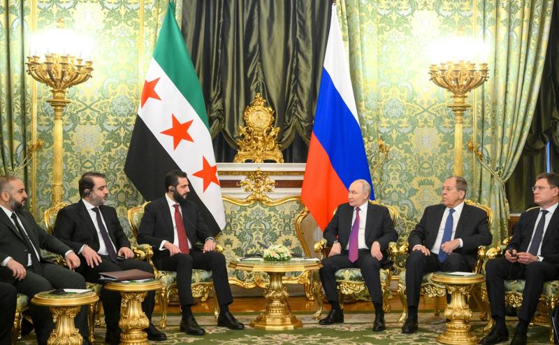 Suriye Cumhurbaşkanı Ahmed eş-Şara, resmi temaslarda bulunmak üzere ikinci kez Rusya'nın başkenti Moskova'ya geldi. Şara'yı kabul eden Rusya lideri Putin, ülkesi ve Suriye arasındaki ilişkileri her alanda geliştirmek için çok şey yapıldığını ifade etti. Putin ayrıca, 'Suriye'nin toprak bütünlüğünü ve Şara'nın çabalarını destekliyoruz. Fırat'ın doğusunun Şam'a dönmesi önemli bir adımdır' dedi.
