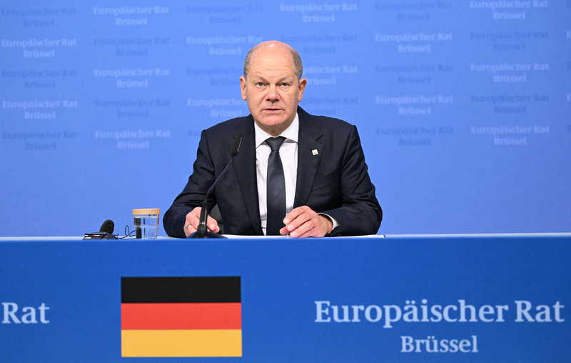 Scholz, Belçika'nın başkenti Brüksel'deki Avrupa Birliği (AB) Liderler Zirvesi'nin ardından basın toplantısı düzenledi.