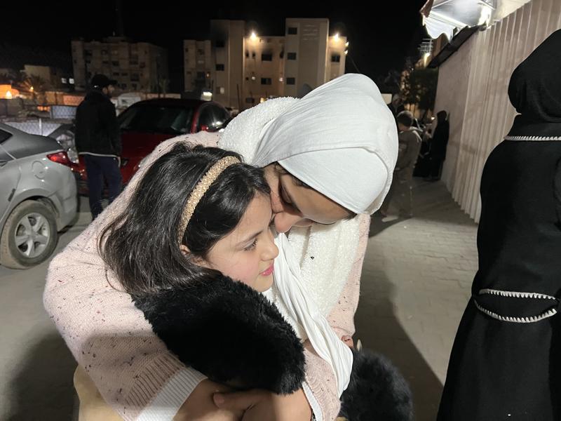 Çocuklarından birine sarılan Hubeyl, "Gazze Şeridi'nin yaşadığı yıkım ve saldırıların dehşeti nedeniyle ailemi hayatta bulamamaktan çok endişe ediyordum." diye konuştu.