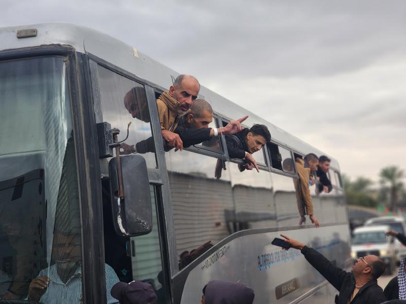 Esirleri taşıyan Uluslararası Kızılhaç otobüsünden inmek için ayağa kalkamayan Tavil, Filistin Kızılayı ekipleri tarafından ambulansla hastaneye kaldırıldı.