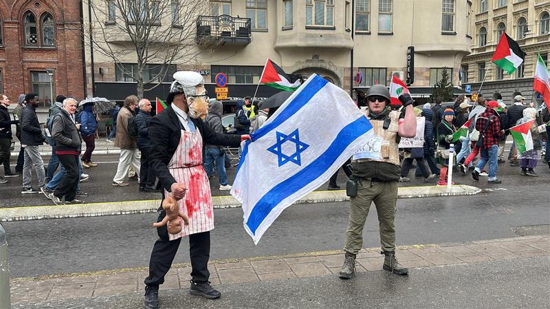"Gazze'de çocuklar açlıktan ölüyor", "Gazze'de saldırılar durdurulsun", "Gıda kısıtlamasına son verilsin", "İran'a saldırılar dursun" ve "İsrail barış anlaşmasına uysun" yazılı pankartlar taşıyan protestocular, İsrail'in Gazze'ye yönelik işgaline son verilmesini ve İsveç'in bu ülkeye silah satışını durdurmasını talep etti.