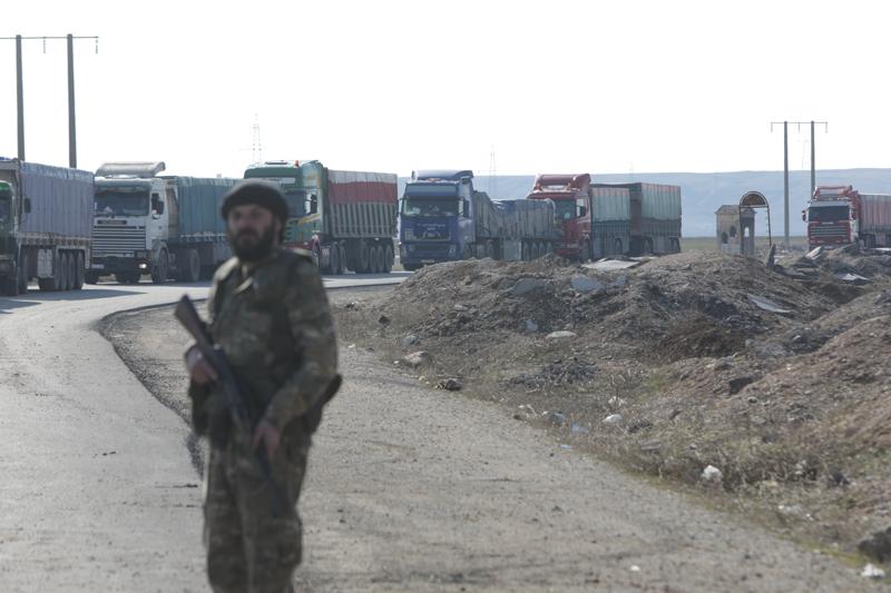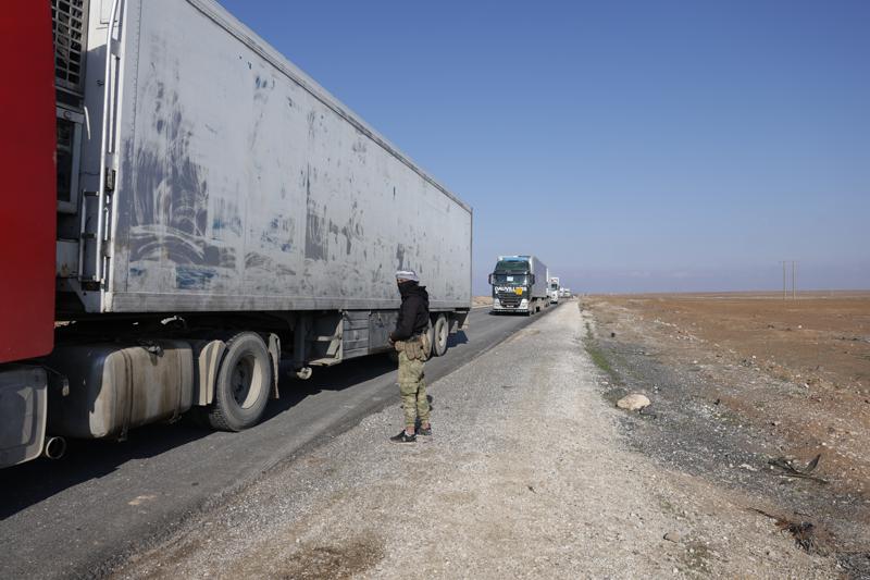AA ekibi, Haseke'nin güneydoğusundaki koridordan geçen yardım kafilesini görüntüledi.