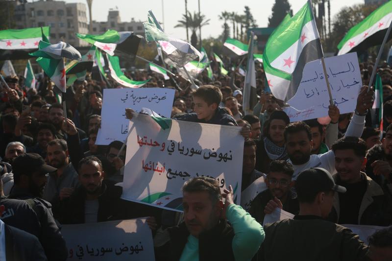 Gösterilerde, Suriye bayrakları taşınarak ülkenin birlik ve bütünlüğünü vurgulayan sloganlar atıldı, bölünme ve ayrılık çağrıları aleyhinde döviz ve pankartlar açıldı.