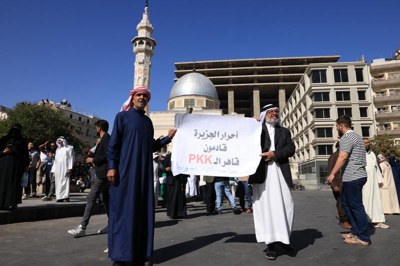 Protestocular, Suriye Cumhurbaşkanı Ahmed Şara'ya çağrıda bulunarak ülkenin doğusunun terör örgütünden temizlenmesini istedi.