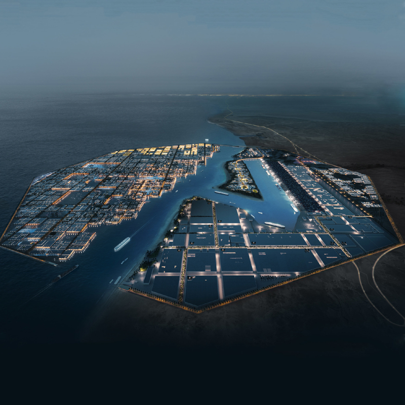 Suudi Arabistan'ın Tebuk Bölgesi'nde inşa edilen akıllı şehir projesi NEOM ülkenin kuzeybatısında Kızıldeniz kenarında yer alıyor. Şehir 26 bin 500 kilometrekarelik bir alanı kaplayacak ve Kızıldeniz kıyısı boyunca 460 kilometre uzunluğunda olacak. Etaplar halinde kullanıma açılacak şehir projesinin 2030 yılında tamamlanması hedefleniyor.
