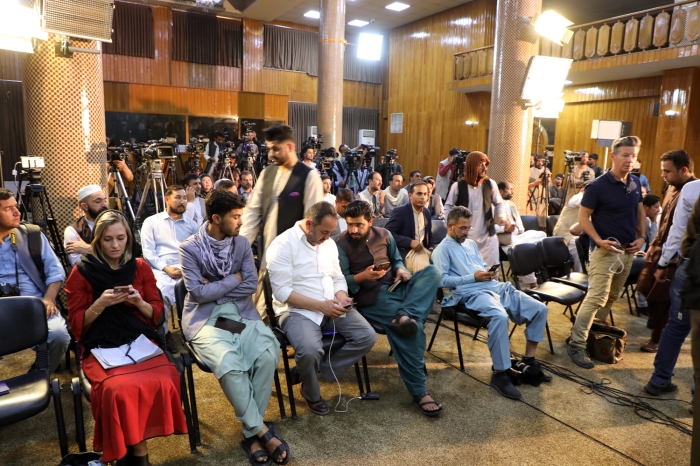 Mücahit, Kabil'de düzenlediği basın toplantısında aralarında kadınların da bulunduğu yerli ve yabancı gazetecilerin sorularını yanıtladı.