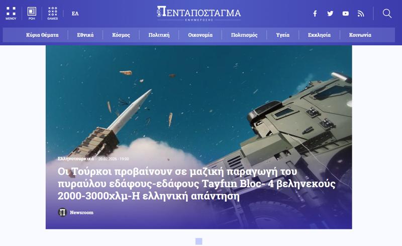 Tayfun Blok-4 füzesi hakkında Yunan basınında yer alan bir haberde, hem İsrail hem de Yunanistan'ın bu kez Türkiye'den gelen yeni bir füze tehdidiyle karşı karşıya olduğu ifade edildi.