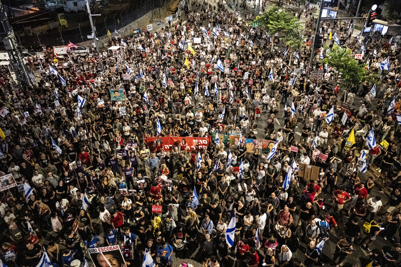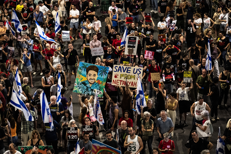 İsrailliler, Gazze Şeridi'ndeki İsrailli esirlerin geri getirilmesi, Başbakan Binyamin Netanyahu hükümetinin istifası ve erken seçimlere gidilmesi talebiyle ülke genelindeki gösterilerine bu hafta da devam etti.