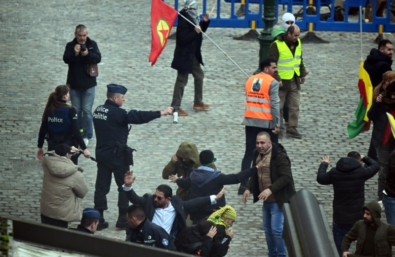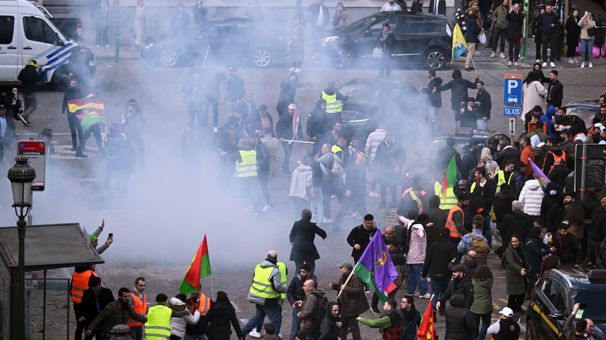 Önce Türkiye'nin Brüksel Büyükelçiliği'nin bulunduğu caddeye, ardından Avrupa Birliği (AB) kurumlarının bulunduğu Schuman Meydanı'na doğru yürümek isteyen söz konusu kalabalık, polis engeliyle karşılaştı.