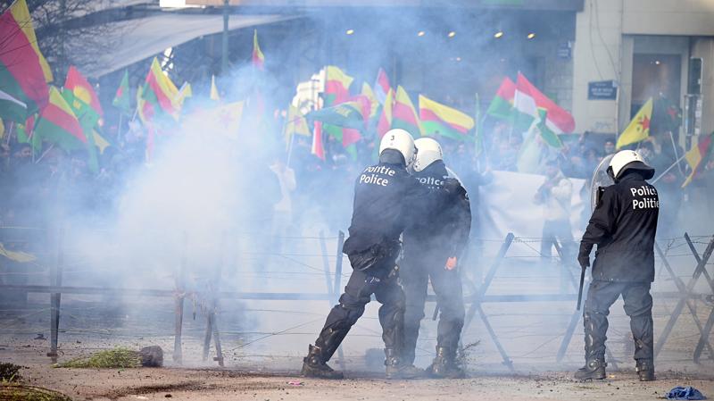 Polisin takip ettiği grup, AB Dış İlişkiler binasının önünde bir süre bekledi, slogan attıktan sonra dağıldı.